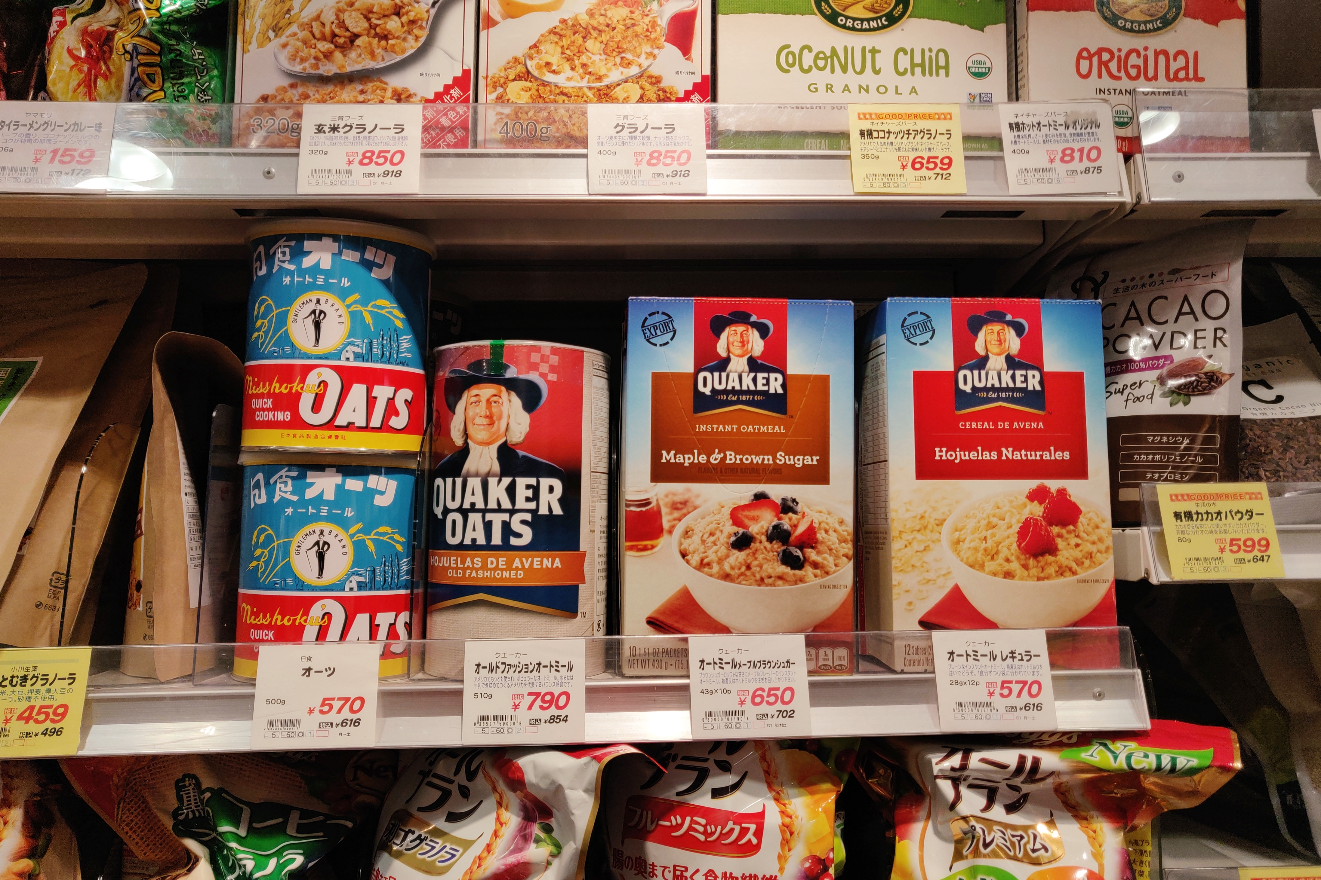 Det tog ett tag, jag sökte först omkring i vanliga matbutiker utan att hitta en enda havreprodukt. Vissa japaner vet inte ens vad man menar när man frågar efter havregryn eller gröt med alla översättningsord man hittat på japanska och engelska. Men så till slut efter lite googlande hittade jag ett forum från 2011 där folk hade diskuterat var man kan hitta havregryn i Osaka. Jag funderade om det ännu efter så många år kan vara ackurat info där, men tog ändå tåget till Umeda (närmare centrum) en dag och hittade havregryn på första försöket! Lite pricey, inte finländskt, men nog så gott!